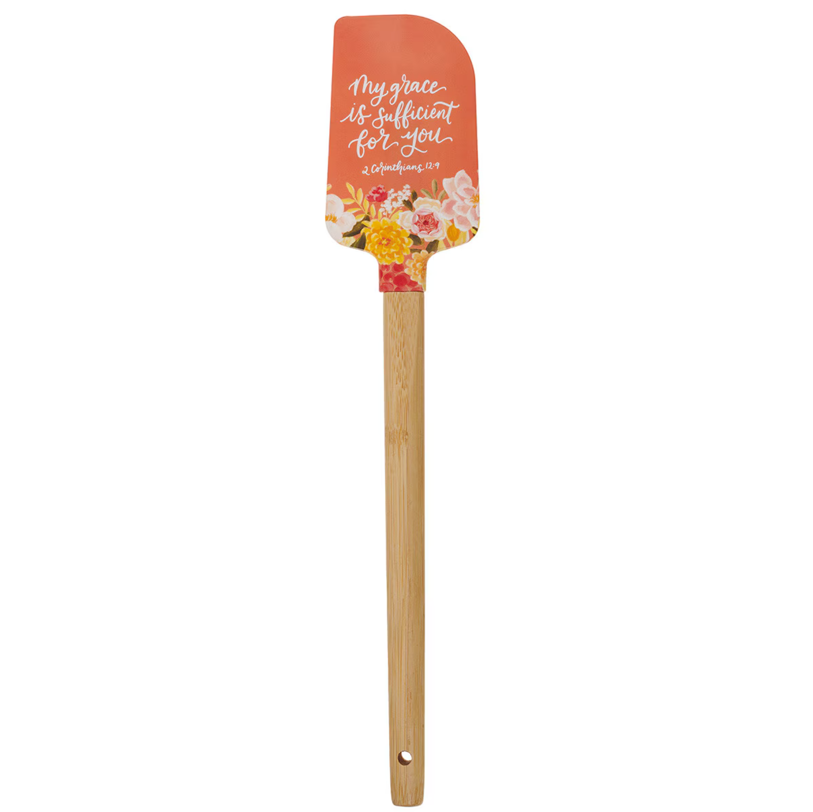 My Grace is Sufficient for You Orange Floral Silicone Spatula – 2 Corinthians 12:9