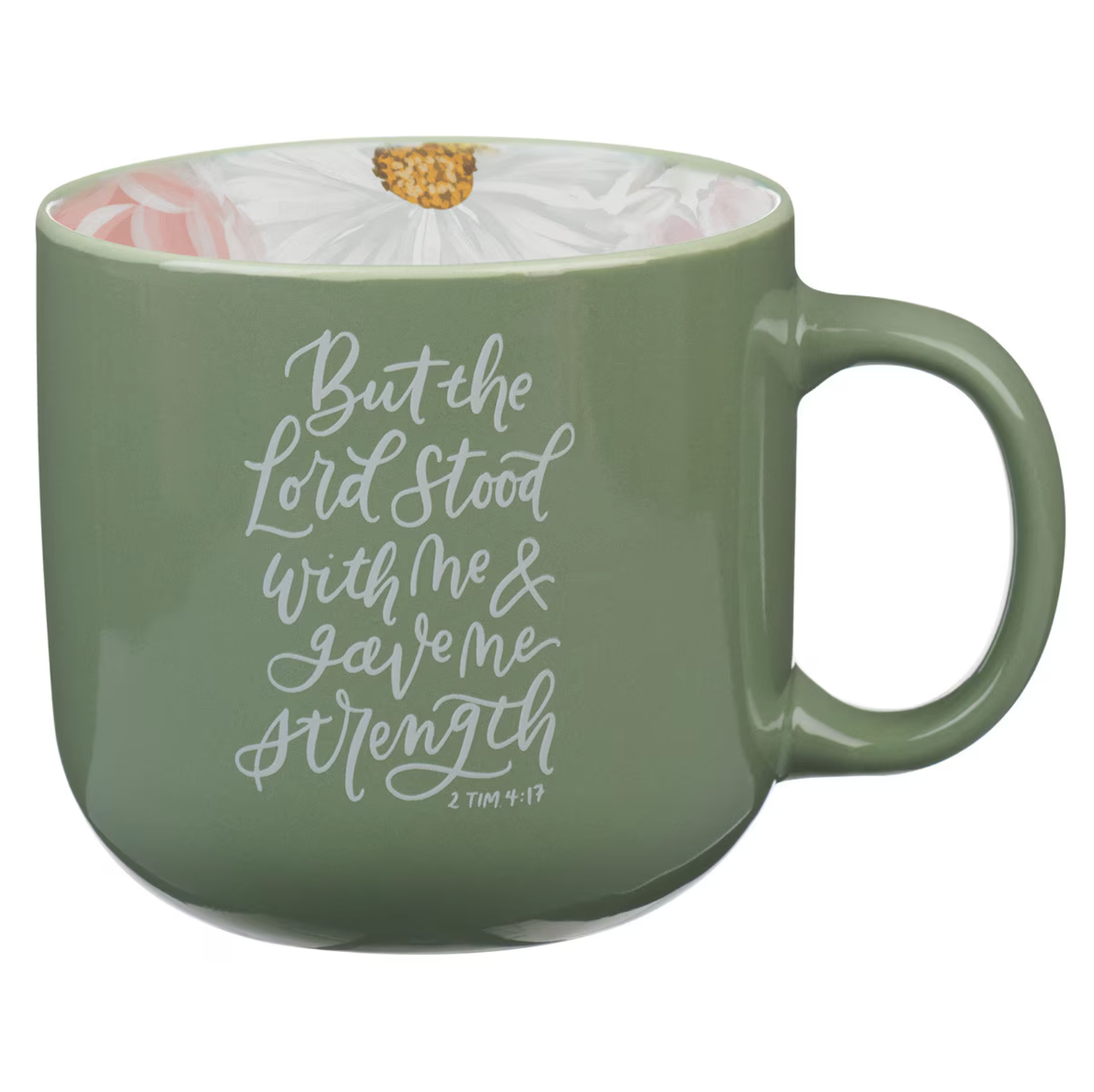 The Lord Stood with Me Sage Green Floral Ceramic Coffee Mug – 2 Timothy 4:17