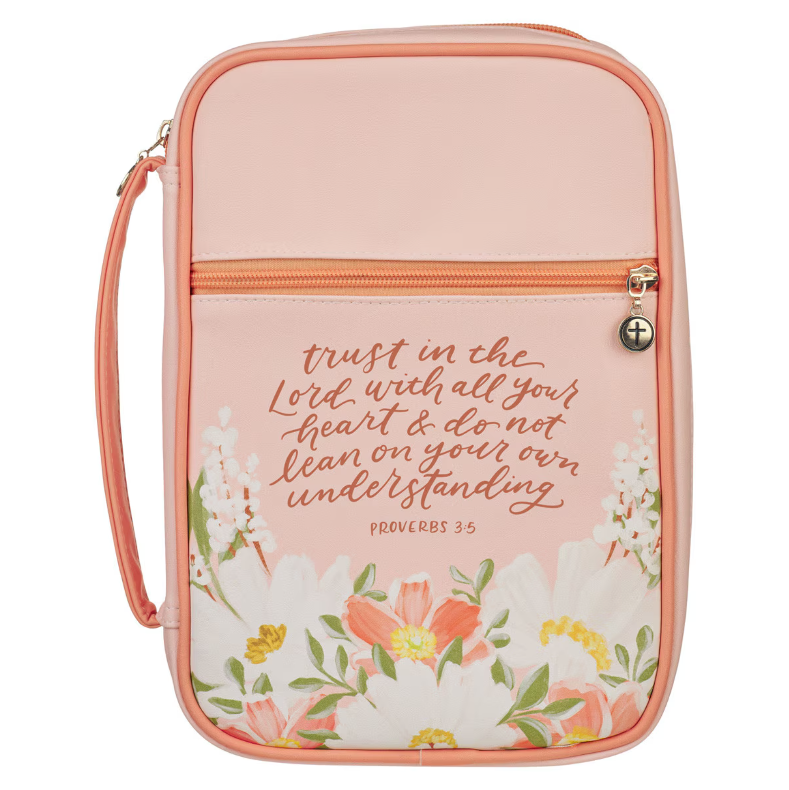 Trust in the Lord Peach Floral Faux Leather Fashion Bible Cover - Proverbs 3:5 - Medium Size